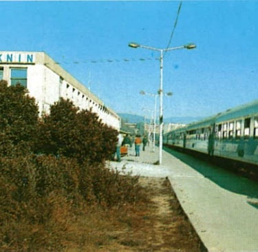 Knin railway station employed 3100 people, 118 trains passed daily through the station, 128 during the summer season, transporting aprox. 2 million passEngers yearly (data from 1986)