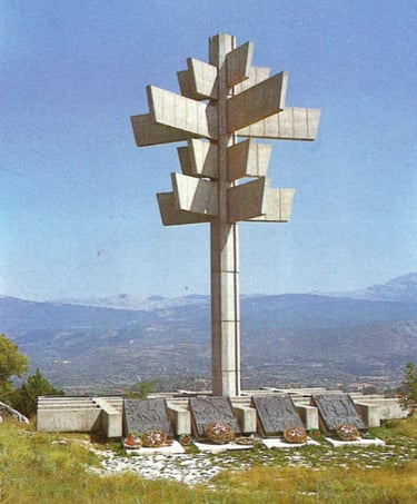 "The monument itself-the flower, is pointing with all its petals-concrete beams, in all directions and trails on which the fighters died that signified life and freedom. The sculpture is bumpy and irregular, but it struggles proudly like a plant through the rocks as it grows implacably upwards, like the freedom being born."