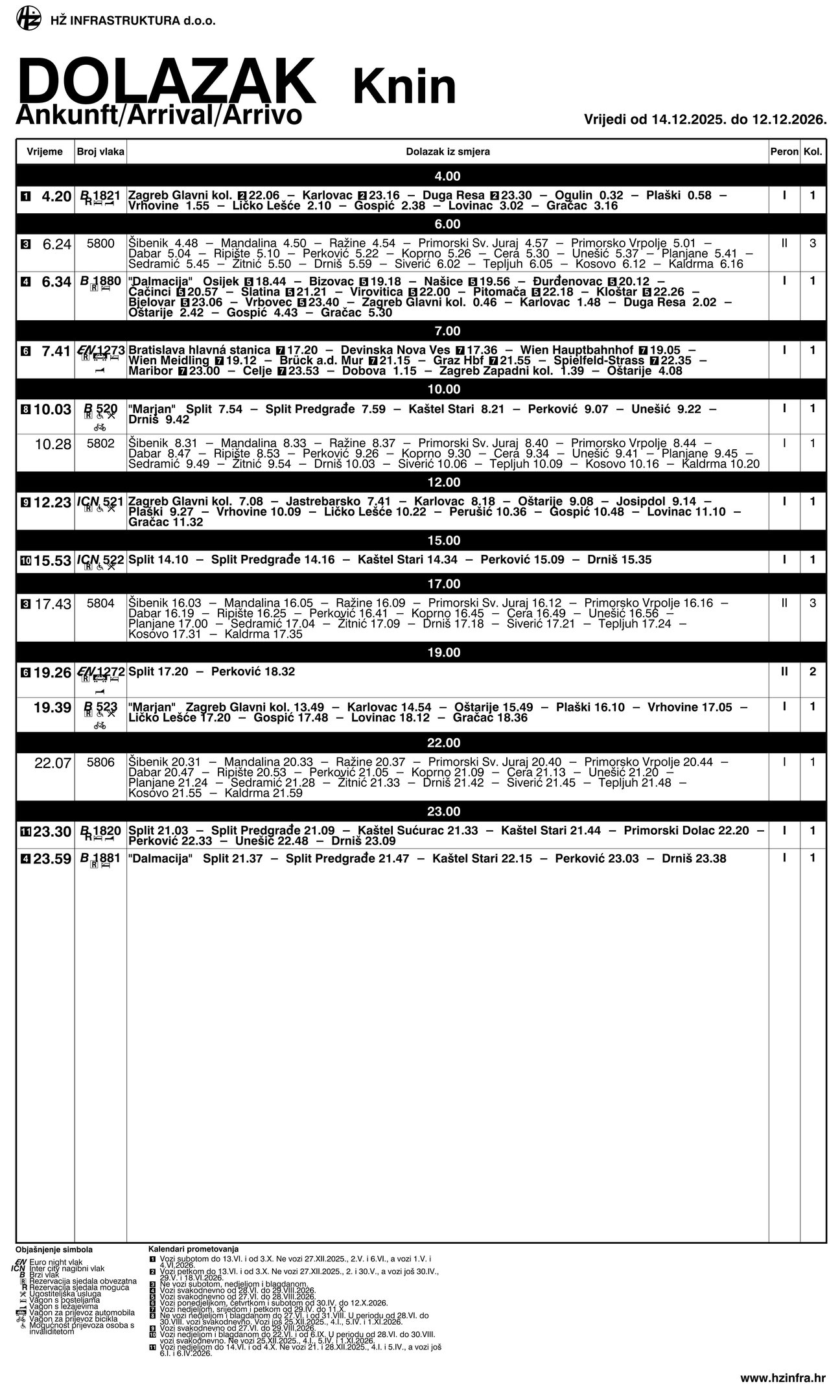 KNIN RAILWAY STATION-ARRIVALS AND DEPARTURES